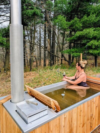 Unwind beneath the open sky in our cedar wood-burning hot tub - a cozy, nature-immersive experience exclusive to our Chengwatana Dome. Fill the tub, stoke the fire, listen to the crackle of wood, and sink into the warmth as steam rises through the pines. Perfect for stargazing, sipping cocoa, or easing sore muscles after a day of adventure.